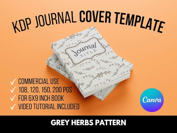 Kdp Cover Template Canva Grey Herbs Amazon Kdp Book Cover Etsy